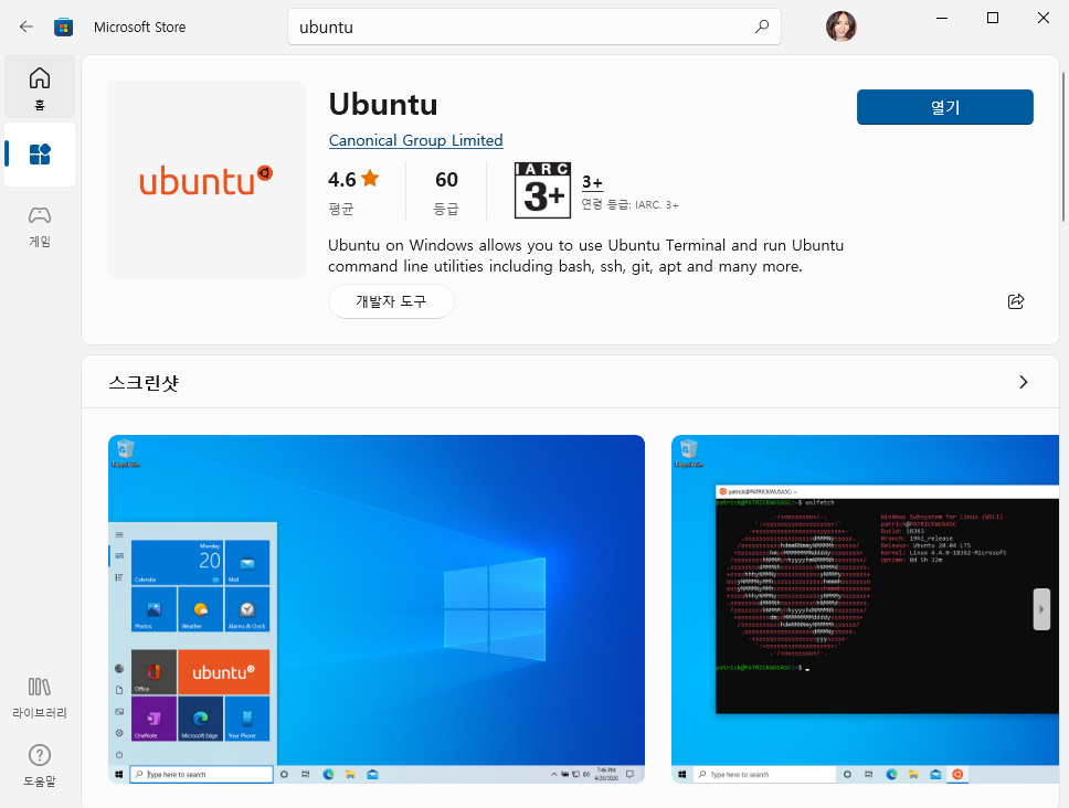 일단 MS스토어에서 우분투를 설치해야하는데 설치 불가 및 오류 메세지가 뜬다면 기본적으로 wsl 업데이트 파일 설치가 필요할 수 있습니다. 또한 버츄얼머신 실행과 마찬가지로 마더보드 BIOS UEFI 에서 가상화 옵션은 꼭 비활성화가 아닌 활성화를 해둬야 합니다. 몇가지 설치 불가능 원인과 해결 방법은 이곳 블로그 참고.