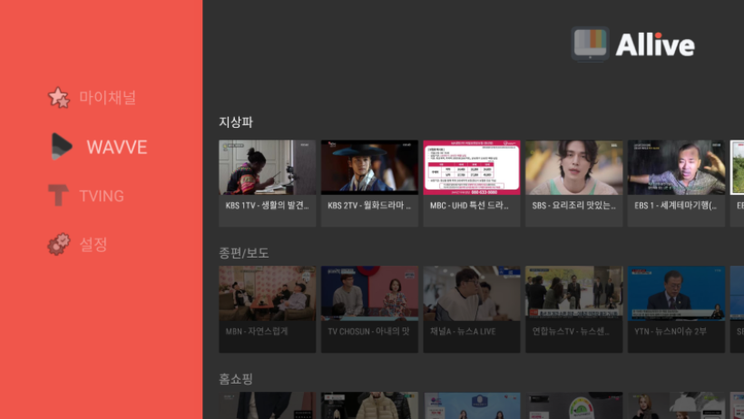 AlliveTV : 올라이브 TV : 웨이브 및 티빙 실시간 TV 보기