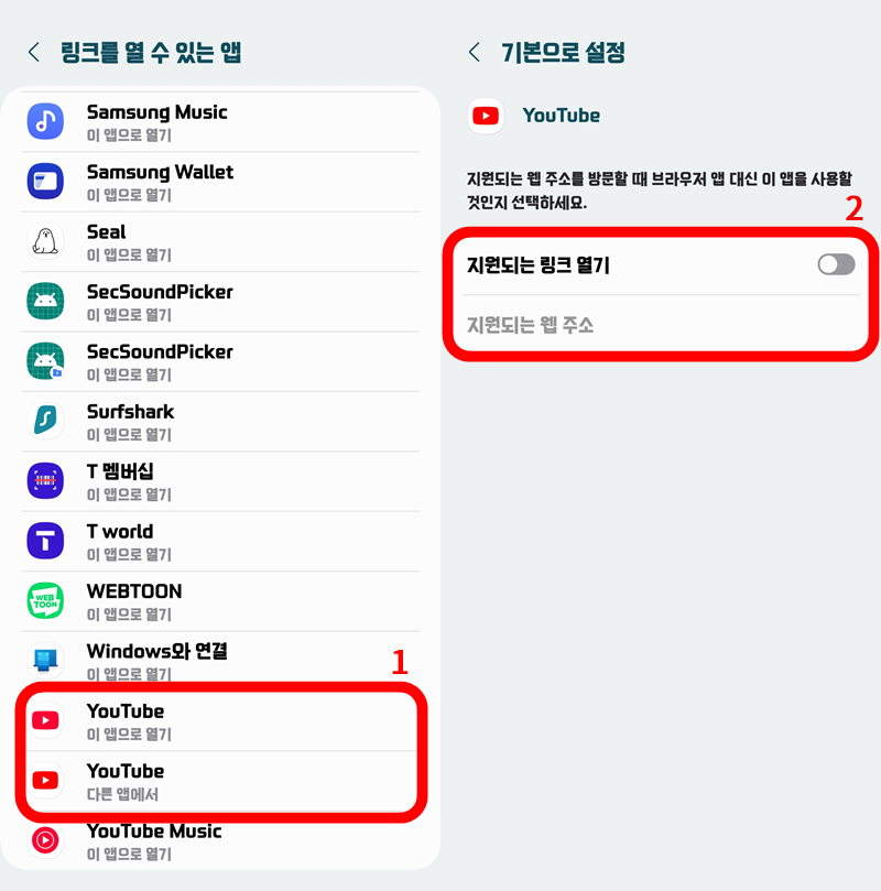 9. 링크 설정을 변경하여 리밴스드 유투브 앱을 기본 앱으로 연결하기